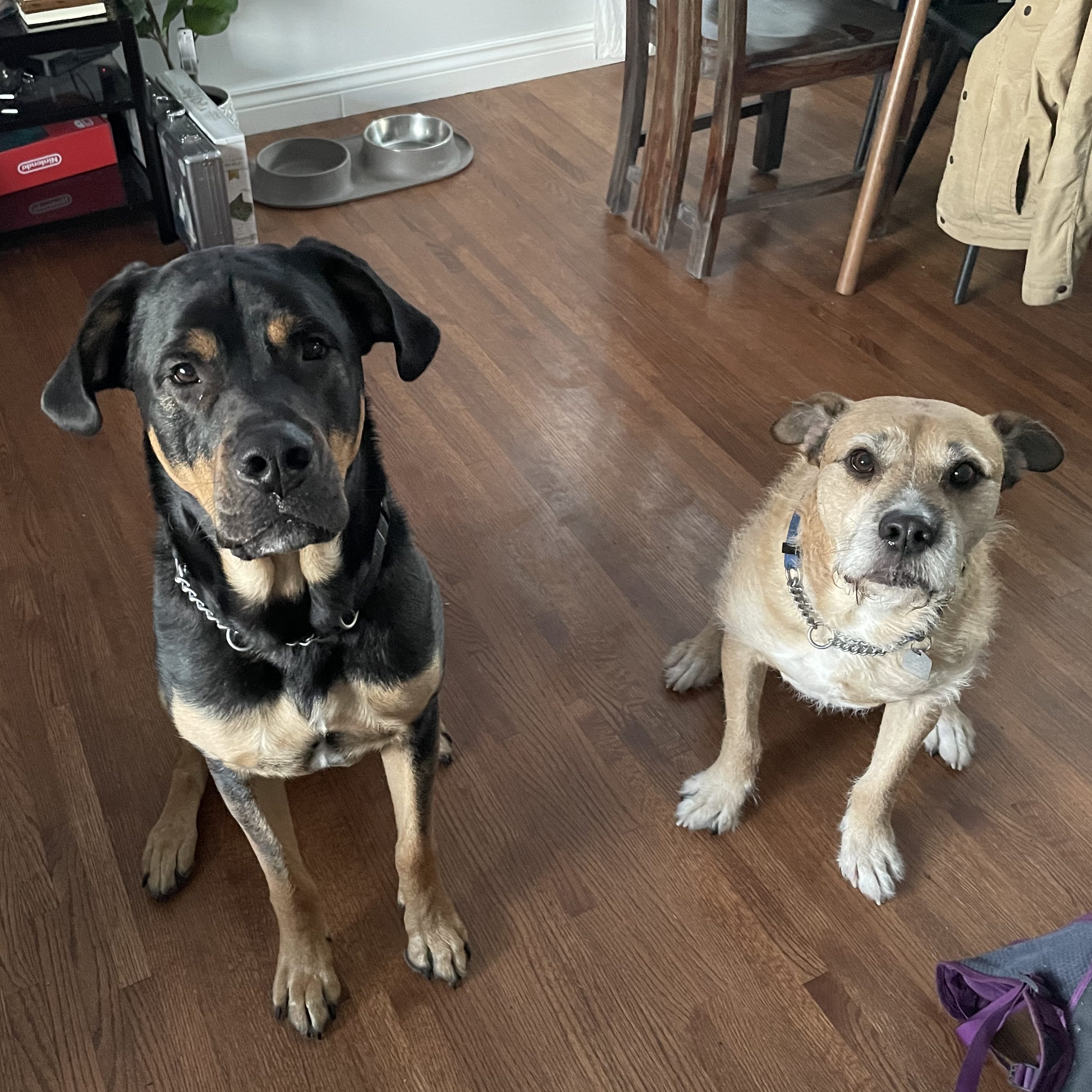 “We have mainly had Brenna walking the dogs instead of behavioral work… I notice that they are happy to see Brenna and more calm generally when I get home because of Brenna’s time with them. I do think that Molly and Norman are less anxious generally. Brenna really cares about our dogs and and their well being which comes through in the attention [paid] to their behavior. Also, Brenna is consistent and reliable and a good communicator regarding how the dogs are doing and any concerns she may have.”